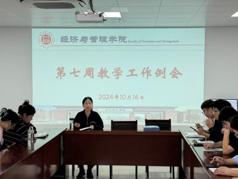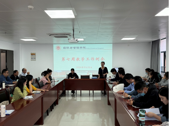 为进一步提升毕业论文的指导质量,确保学生毕业论文高质量完成。2024年10月15日下午,经济与管理学院在行政楼725会议室组织召开第七周教学工作例会及毕业论文指导教师培训会。本次会议由院长吴玲主持,院长助理、银龄专家以及毕业论文指导教师共同参会。