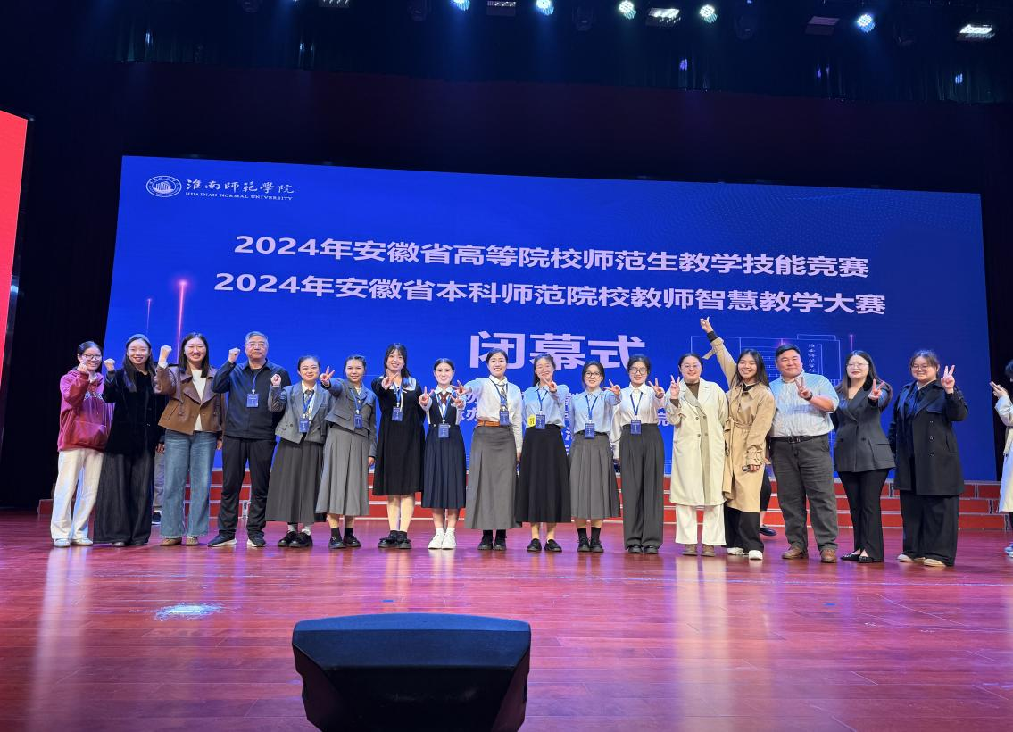 10月27日,由安徽省教育厅主办、淮南师范学院承办的“2024年安徽省高等学校师范生教学技能竞赛”在淮南师范学院泉山校区圆满落幕。本次活动自今年9月初开始启动,并通过院赛、校赛等层层选拔,推荐10名学科选手和3组教具制作选手代表学校参加省线上初选,最终8名学科选手通过线上初选,代表学校参加线下决赛。