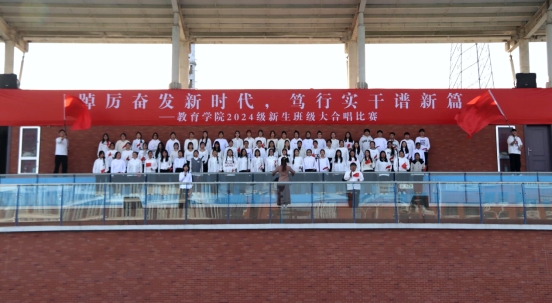 为进一步丰富同学们的校园文化生活,增强班级集体荣誉感,展现青年学生朝气蓬勃、团结一致、开拓进取的精神风貌,教育学院在2024级新生班级中举办了“踔厉奋发新时代,笃行实干谱新篇”第四届新生班级大合唱比赛,34个新生班级1200多名同学组成17支参赛队伍参加了比赛,非新生班级的辅导员老师担任评委。学院领导、辅导员老师及全体2024级新生观摩了比赛。
