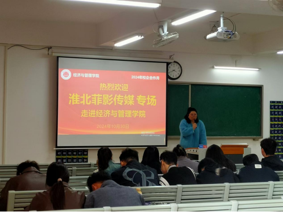 淮北菲影传媒公司负责人邢影女士首先介绍了淮北菲影传媒公司的基本情况,包括公司的成立背景、发展历程以及在当前电商行业中的地位。随后,她详细讲解了公司的核心业务,包括抖音带货、游戏解说、幕后运营等多个领域。同时,她还分享了自己在电商行业的从业经验和心得,鼓励同学们要勇于尝试、敢于创新,不断提升自己的专业素养和综合能力。