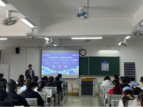 顺丰速运安徽区淮北片区区长季台成以专业的形象和饱满的热情,向同学们详细介绍了顺丰的发展历程、业务范围、企业概况、工作模式、晋升机制及人才培养方案等。他针对2024年推出的“新鹰计划”进行了详细讲解,该计划主要是培养一批具有创新思维和实战能力的年轻人才,为他们提供广阔的职业发展空间和晋升机会。