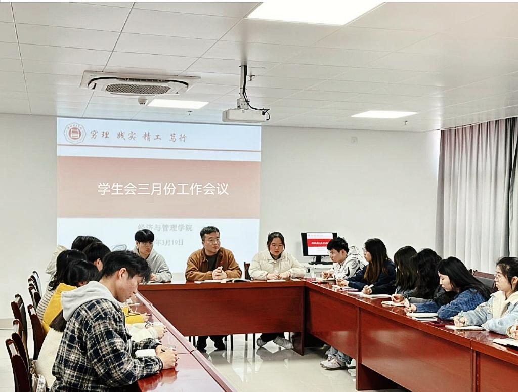 为深化红色文化教育,提升学生思想政治素养,同时总结学生活动经验、优化工作机制,经济与管理学院于2025年3月19日在行政楼725会议室召开三月份学生会工作例会。会议由学院团总支书记王绎程主持,学生会全体成员参会。会议强调,要在学生工作中融入红色文化,通过多样化的活动形式传承红色基因,增强学生的责任感和使命感,不断提升学生会的组织力和服务水平。
