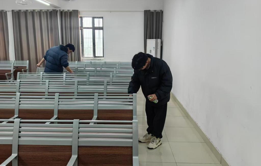 教室桌面除胶行动则是一场考验耐心与细心的攻坚战。长期积累的贴纸胶渍严重影响桌面美观和使用,志愿者们带上除胶剂、刮板和抹布,逐一清理每张课桌上的顽固污渍。经过数小时的努力,原本黏腻的桌面变得干净整洁,为同学们营造了舒适的学习环境。