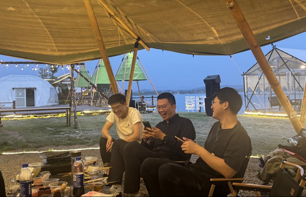 傍晚五时,野炊活动正式开始。大家分工协作,配合默契,在炊烟袅袅中体验动手的乐趣。围坐在餐桌旁,伴着悠扬的音乐和绚丽的晚霞,品尝着亲手烤制的美食,畅谈工作与生活,团队情谊在轻松愉快的氛围中不断升温。活动结束后,教职工们自觉整理场地,展现了良好的环保意识。