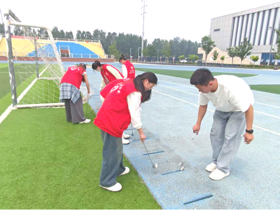 在校园公共区域,同学们化身“校园美容师”,以小组为单位展开环境维护行动。他们手持扫帚、抹布、夹子等工具,穿梭在操场、教室与宿舍等各个角落。在操场,沿着跑道、草坪和主干道仔细搜寻,弯腰用夹子捡拾隐藏在绿化带里的纸屑、包装袋;在教室,认真擦拭黑板、窗台,清理课桌抽屉杂物,规整桌椅摆放;在宿舍,认真打扫阳台、宿舍过道等区域,仔细擦拭宿舍用品、门窗,彻底清理楼道内的堆积物,将杂物分类整理,确保宿舍环境整洁又安全。
