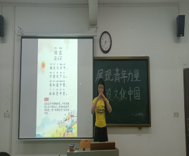 活动以“PPT+教学案例”的创新分享拉开序幕。班级学生结合《3-6岁儿童学习与发展指南》,用生动课件展示“如何用古诗词启蒙幼儿语言”、“传统节日游戏设计”等教学方案。黄心如、杨欣睿、张慧、王敏、高梦同学现场演示教学片段,将《悯农》、《春晓》改编成手指谣,让幼儿在韵律中感知诗词之美,赢得阵阵掌声。辅导员曹老师点评道:“青年幼师要当好文化‘翻译官’,让千年文脉在孩子心中生根发芽。”