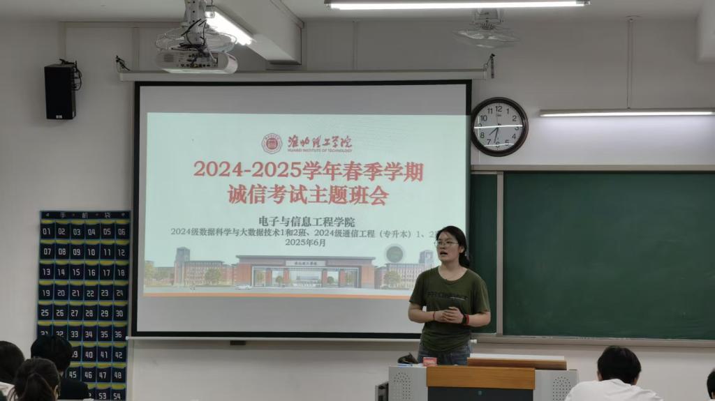 近日,为迎接即将到来的期末考试,营造风清气正的考试氛围,强化学生的诚信意识,电子与信息工程学院全体辅导员在学院各班级教室分别召开了以“诚信考试,诚信做人”为主题的期末考试诚信教育班会。本次班会覆盖电信学院全体在校生,旨在通过集中教育引导学生树立正确的考试观念,自觉遵守考试纪律,以诚信之姿迎接期末挑战。