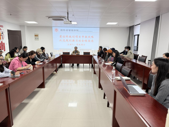 为提升教师省社科规划项目申报能力,9月19日下午,经济与管理学院在行政楼725会议室举办“省社科规划项目申报攻略:从选题到撰写的全程指南”专题讲座,学院全体教师参加,由院长吴玲主持。