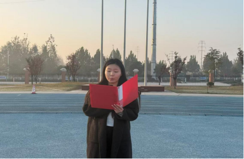 2025年11月10日,学生代表孙莹以《以今日之我,筑明日之中国》为主题进行国旗下演讲。今日之中国,是前辈们奋斗的硕果;明日之中国,待我们续写华章。作为新时代青年,我们当以理想为帆、实干为桨,在学习中锤炼本领,在实践中增长才干。不必仰望远方,脚下即是征途。让我们把青春热血融入国家发展,用每一次拼搏、每一份坚守,汇聚成强国建设的磅礴力量,以今日之我,筑就明日更加繁荣昌盛的中国。
