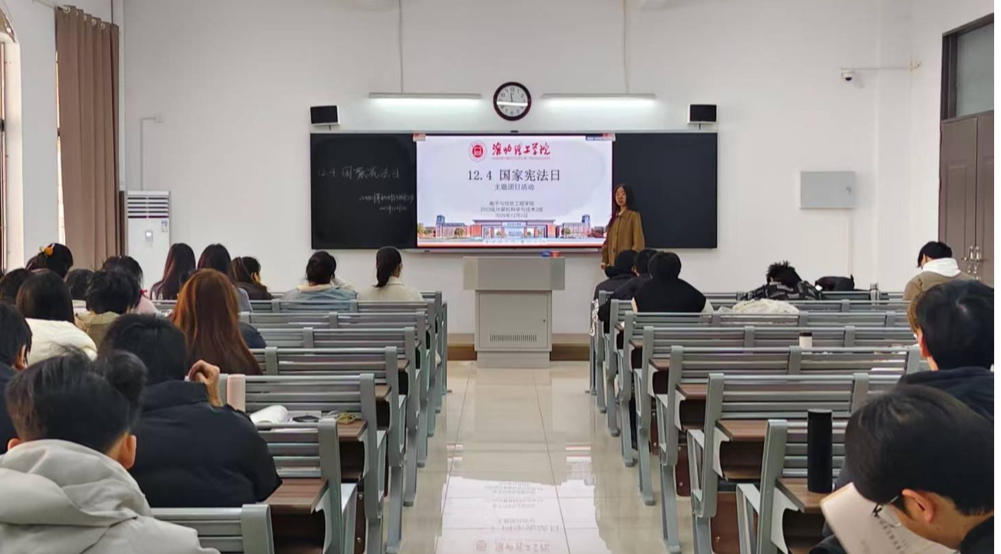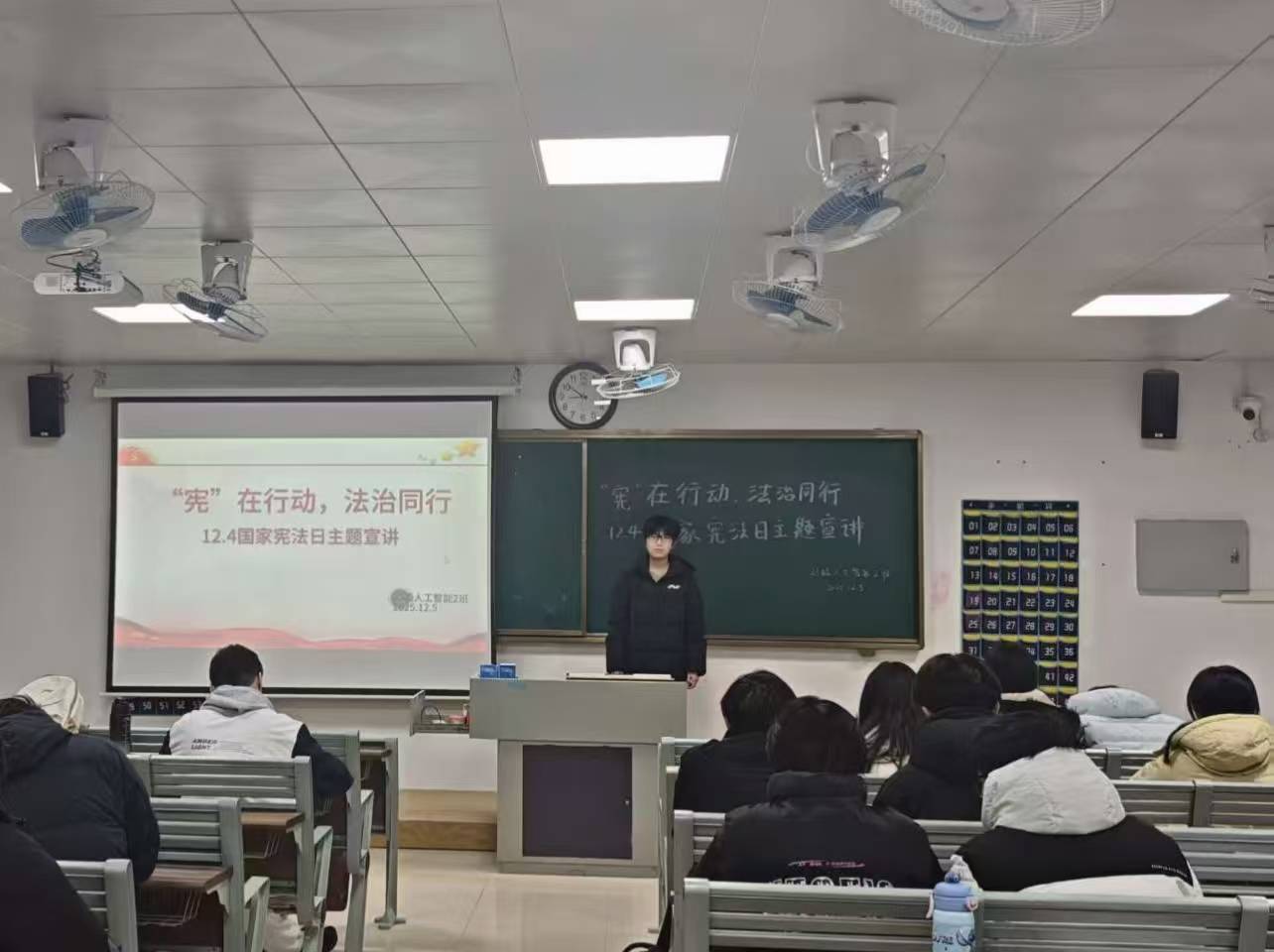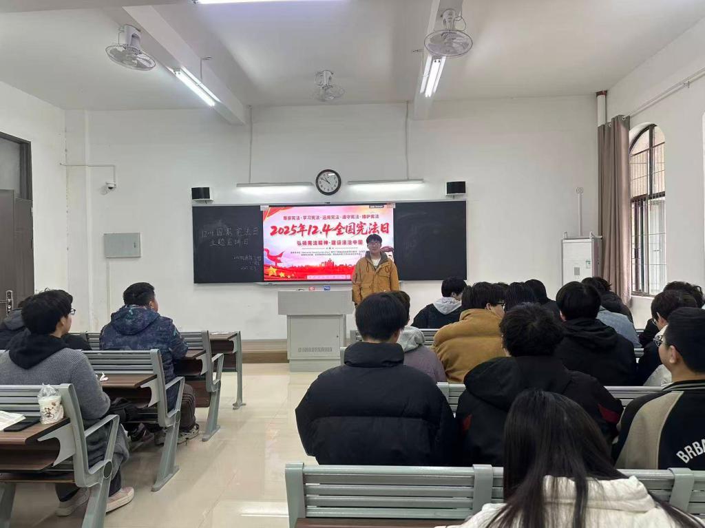 为深入学习宣传贯彻习近平法治思想,大力弘扬宪法精神,引导青年学生增强宪法意识、树立法治观念,在第十二个国家宪法日来临之际,电子与信息工程学院组织2023级、2024级和2025级各班级开展“12・4”国家宪法日主题宣讲活动。