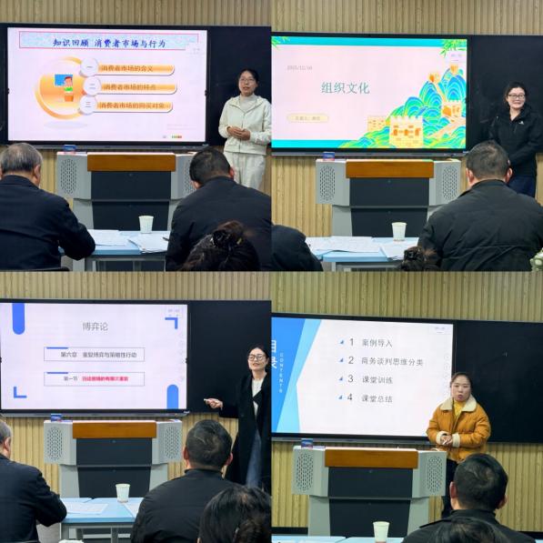 为进一步夯实青年教师教学基本功,提升教育教学质量,搭建教师交流学习平台,2025年12月10日下午14:00,经济与管理学院在1教210教室顺利开展“课堂教学人人过关”展示暨第四届青年教师教学比赛选拔赛活动。16位教师参加本次比赛,学院全体教师参加活动。