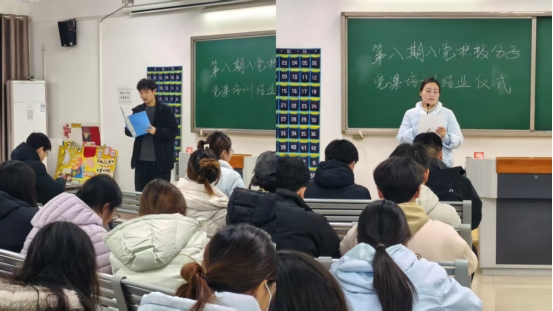 12月2日,学院举办了第八期入党积极分子党课的结业仪式。在仪式上,经济与管理学院经济学支部书记郑凡老师在发言中强调,本次培训旨在夯实入党积极分子的理论根基与实践能力,希望学员们以考核为契机,将所学所思转化为向党组织靠拢的实际行动;同时激励学员们认真准备即将到来的结业考核,凭借扎实的理论基础和优良的实践能力接受检验,期望大家积极备考、冷静应考,以出色的成绩通过考核,实现培训的预期成效。随后,学生代表权洪飞、高兴两名同学依次交流培训体会。权洪飞分享了参与志愿服务时的感悟,他表示通过协助校园文明督导工作,深刻体会到党员“为人民服务”宗旨的实践意义;高兴则结合理论学习心得,谈到对党的二十大精神的理解让自己更加坚定了理想信念。