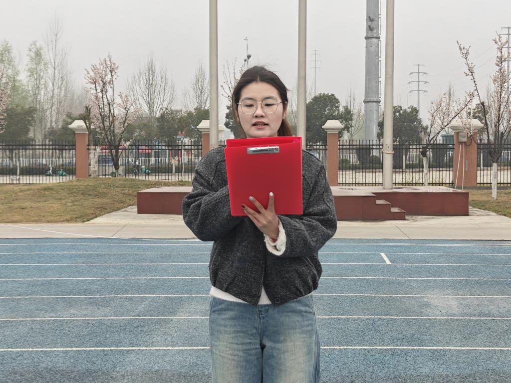 随后,学生代表周潇然发言,她结合自身学习生活经历,分享了对廉洁自律的理解与感悟,号召同学们以此次升旗仪式为契机,将廉洁之心内化于心、外化于行,以清廉品格滋养青春成长,用专业之力担当时代之责。