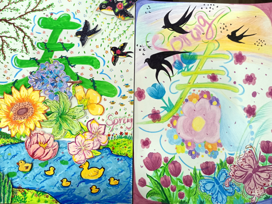 “一笔春色”活动要求同学们以“春”字为创作核心,可以利用春天的各种花草植物进行艺术创作,且作品要有原创行、内容积极向上。从收集到的作品看,同学们在创作中构思巧妙、创意新颖,他们或将“春”字笔画化作柳枝、桃花、飞燕等春日意象;或以渐变撞色铺陈底色,让“春”字与繁花、绿草共生,尽显色彩层次;或将学子的青春情怀融入字间,点缀风筝、萌趣图案,传递青春气息;还有一部分作品还采用了环保材料创作,传达了环保、绿色的理念,贴合了“春”字的主题与教育情怀。