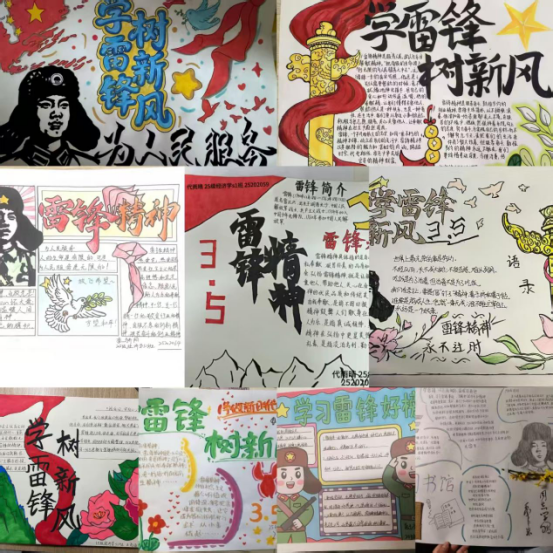 “巧融废旧践勤俭,深耕志愿绘雷锋”主题手抄报活动中,全院同学积极参与,用手中的画笔描绘出心中的雷锋形象,紧扣雷锋事迹、志愿活动等核心主题,最终呈现出一幅幅色彩鲜明、构思巧妙的手抄报,不仅展现了同学们的艺术创造力,更生动诠释了雷锋精神的内涵。