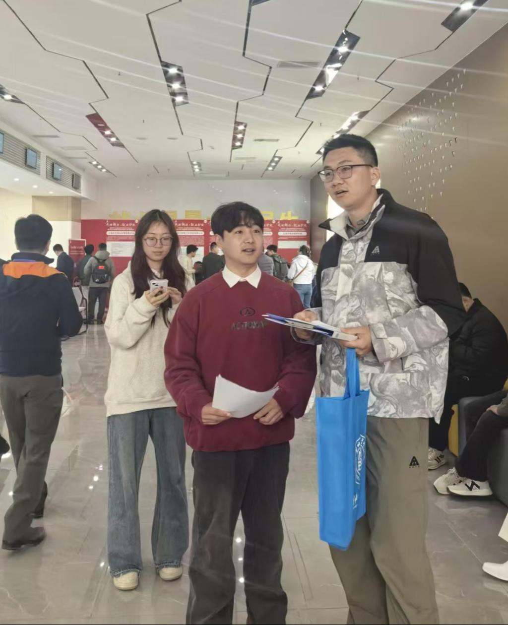 我院毕业生身着整洁着装,手持精心准备的简历,有序穿梭于各招聘展位之间,认真了解企业发展概况、岗位需求、职业发展路径等信息,主动与招聘负责人沟通,展现出良好的专业素养和积极向上的求职风貌。不少学生在老师的指导下,精准匹配岗位需求,成功投递简历,部分学生还与用人单位达成了初步就业意向。