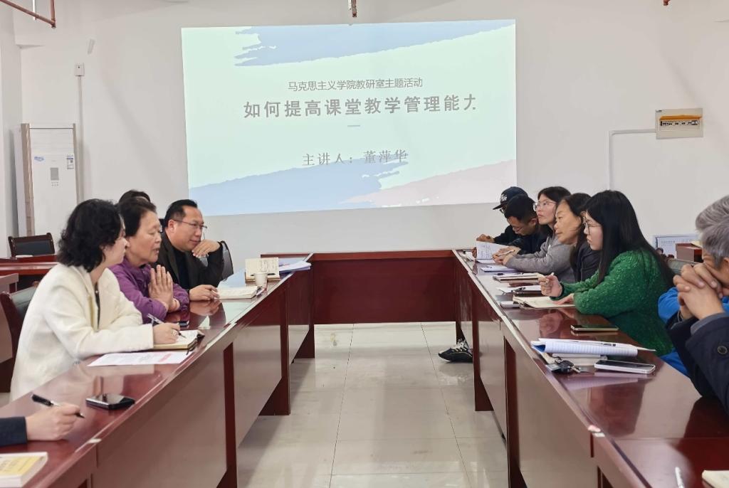 马院教师董萍华首先就“如何提高课堂教学管理能力”作经验分享。她立足“学生为本”的理念,提出科学排座、量化激励、手机管理、活动激活课堂、案例教学融入五项实操举措。董老师指出,课堂管理需因材施教,以沟通为桥、鼓励为帆,把握语言幽默尺度,做到有温度、不放弃。董老师的精彩发言和睿智的课堂管理技巧引发了在座教师的热烈讨论。大家就自己授课班级的课堂管理问题都提出了问题及解决办法,有的当场请教,有的现场交流,切实达到了统一思想、解决问题、明确行动的会议目的。刘奔前副院长对董老师的分享给予高度评价。他强调,教师要带着感情深耕课堂,深入了解学情、精准把握教情,积极推动马院课堂教学管理常态化、高效化。并针对课堂教学管理、教学质量提升、科研成果产出等方面提出具体要求,鼓励教师要笃行实干、精进不休。