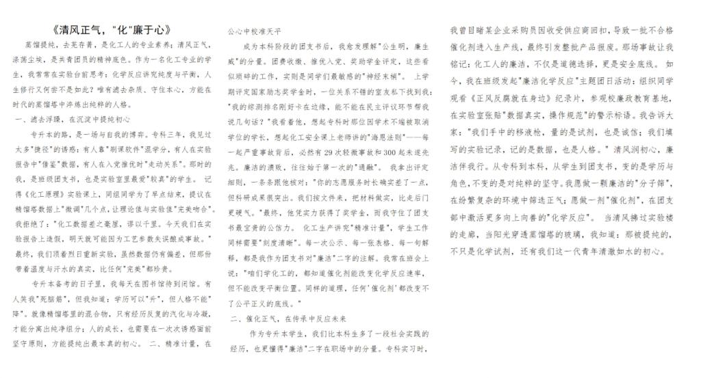 此次廉政文化教育系列活动,形式多样、内容充实,有效推动了廉政文化在学院落地生根,切实增强了全院师生的廉洁自律意识和责任担当。下一步,能源材料与化工学院将持续深化廉政教育,创新活动形式、丰富活动内容,把廉政教育融入日常、抓在经常,着力打造崇廉尚洁的校园文化,引导全院师生以廉洁之风护航成长、以务实之举担当作为,为学院高质量发展注入清风正气。
