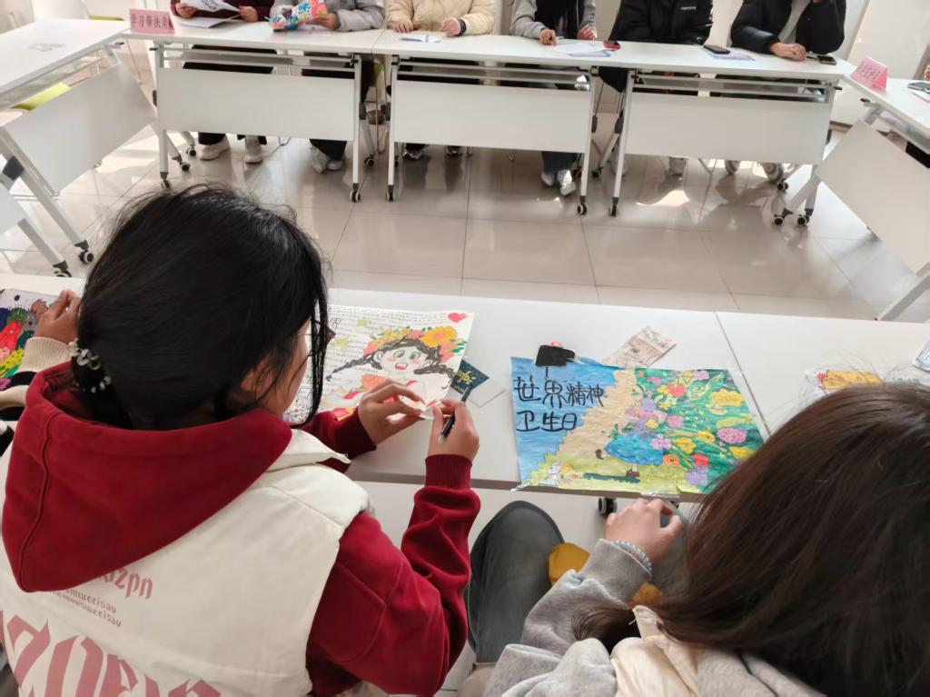 活动伊始,孙欣宇老师简要介绍了此次团辅活动的目的与意义,讲解了绘画创作与心理疏导的关联,鼓励同学们放下拘谨,通过画笔表达内心真实感受,释放心理压力。活动现场氛围轻松融洽,同学们全身心投入绘画创作。大家以“心向阳光”“温暖同行”等为主题,凭借丰富的想象力,将内心的情绪、对生活的热爱、对未来的期许融入色彩与线条之中,一笔一画勾勒心声,一幅幅作品承载着青春的感悟与心灵的温度。创作过程中,同学们相互交流、彼此鼓励,在互动中增进了解、收获温暖。