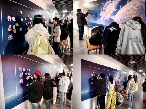 活动现场,工作人员精心准备了空白便利贴与书写工具,为同学们搭建起抒发心声、寄语未来的温馨平台。同学们满怀热忱、认真落笔,将青春梦想、学习目标、生活感悟与美好期许一一书写在便利贴上。书写完毕后,大家有序将便利贴粘贴至心愿墙,色彩缤纷的心愿卡片层层叠叠,汇聚成一面温暖治愈、充满朝气的青春心愿墙,成为校园中一道亮眼的风景线。