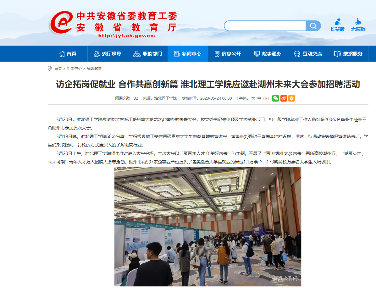 【安徽教育网】访企拓岗促就业 合作共赢创新篇 beat365唯一官方网站应邀赴湖州未来大会参加招聘活动