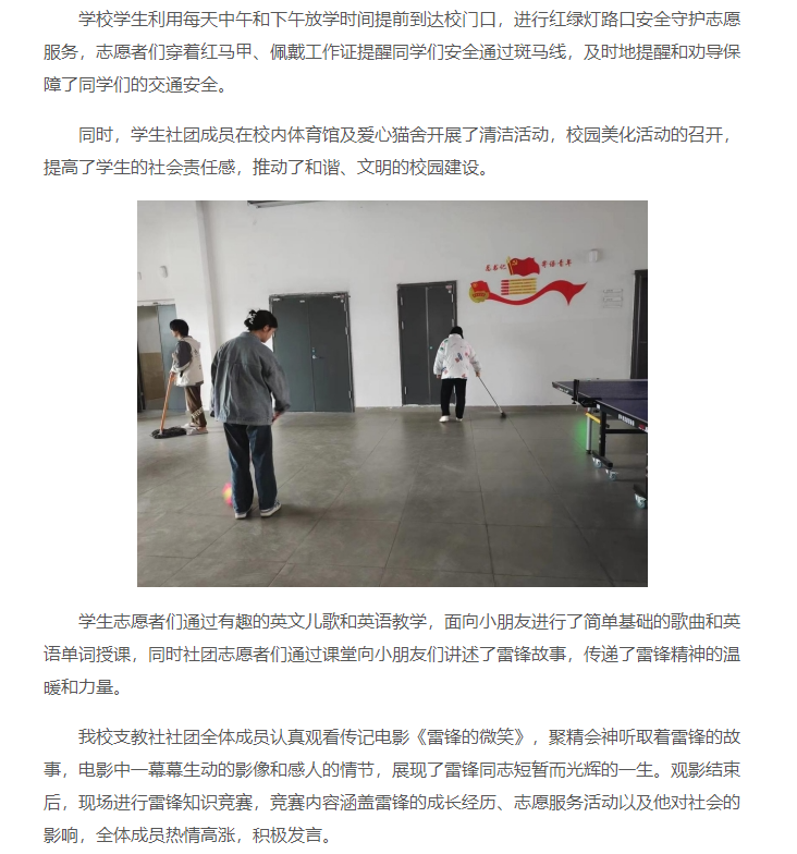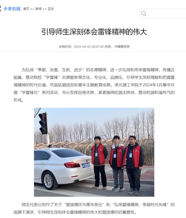 为弘扬“奉献、友爱、互助、进步”的志愿精神,进一步弘扬和传承雷锋精神,传播正能量,推动beat365官网“学雷锋”志愿服务常态化、专业化、品牌化,引导学生深刻理解和把握雷锋精神的时代价值,巩固拓展团员和青年主题教育成果。beat365唯一官方网站于2024年3月集中开展“学雷锋月”系列活动,充分发挥自身优势,紧紧围绕校园主阵地,推动校园和谐风气的形成。对此,中青网进行了报道: