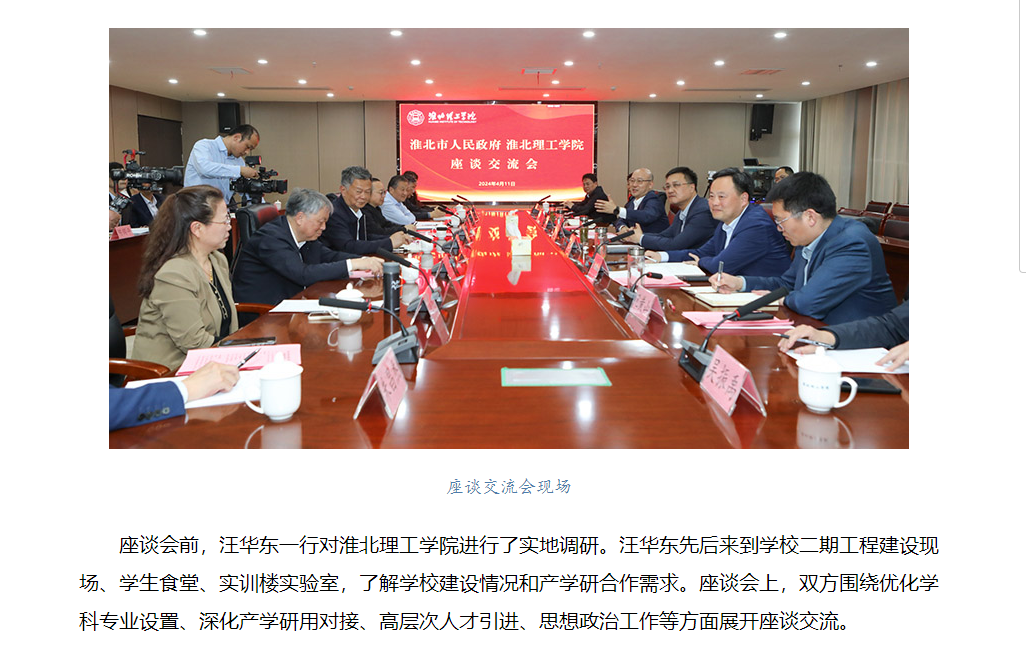 为推动市校深度融合,不断开创市校合作新局面,4月11日下午,淮北市政府与beat365唯一官方网站举行座谈交流会,共商城市与大学融合发展大计。对此,人民网-安徽频道进行了报道: