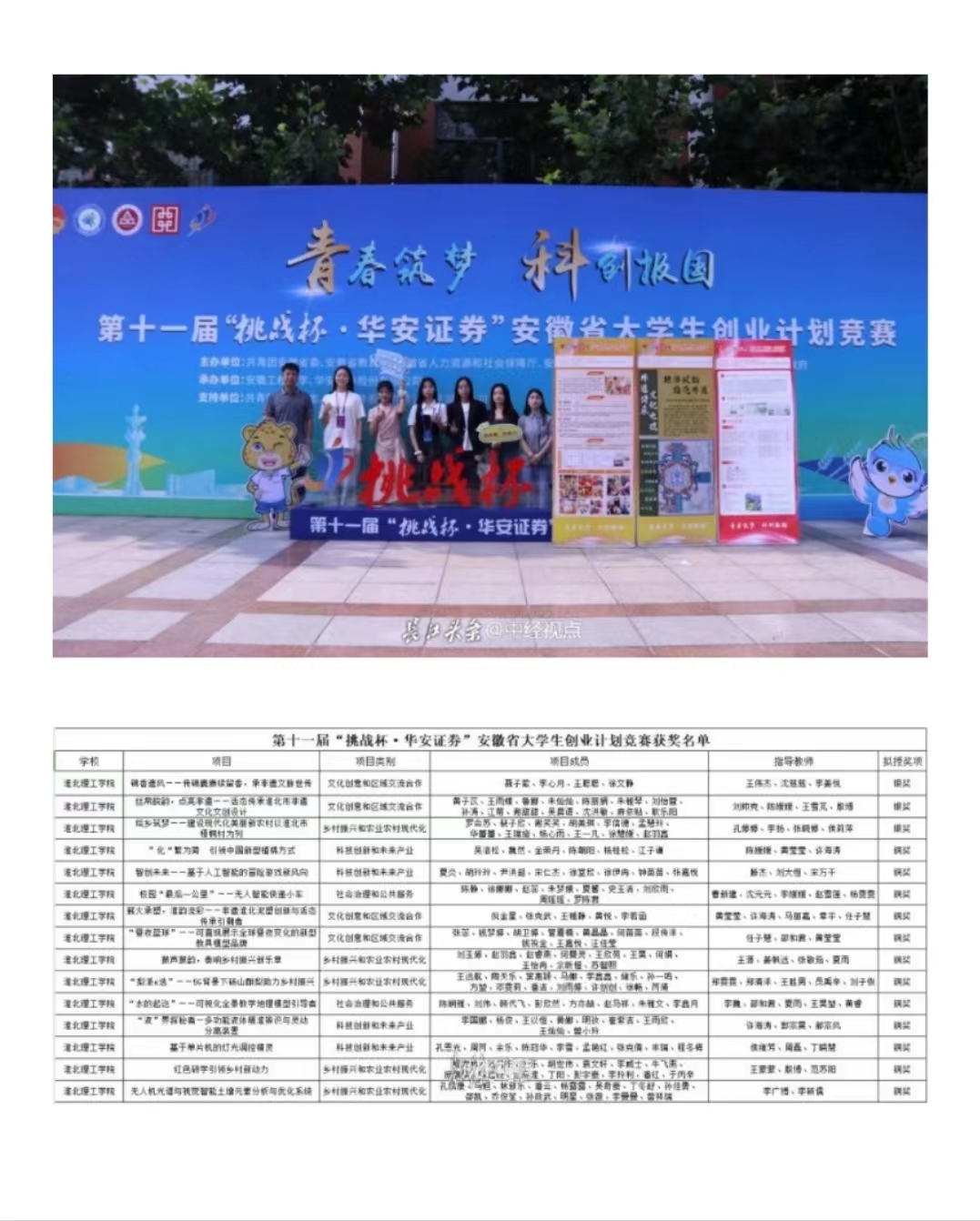 近日,由共青团安徽省委员会、安徽省教育厅、安徽省人力资源和社会保障厅、安徽省科学技术协会和安徽省学生联合会等单位共同主办的第十一届“挑战杯·华安证券”安徽省大学生创业计划竞赛决赛在芜湖市落下帷幕。经过决赛激烈角逐,beat365唯一官方网站报送项目《锦香遗风——传锦囊赓续留香,承非遗文脉世传》《丝帛皖韵,点亮非遗——活态传承淮北市非遗文化文创设计》《“绘乡筑梦”——建设现代化美丽新农村以淮北市梧桐村为例》等3项获银奖;《“化”繁为简·引领中国新型植棉方式》《智创未来——基于人工智能的冒险游戏新风向》《校园“最后一公里”——无人智能快递小车》……等12项获铜奖,获奖数量、质量均创学校历史新高。对此,长江网进行了报道: