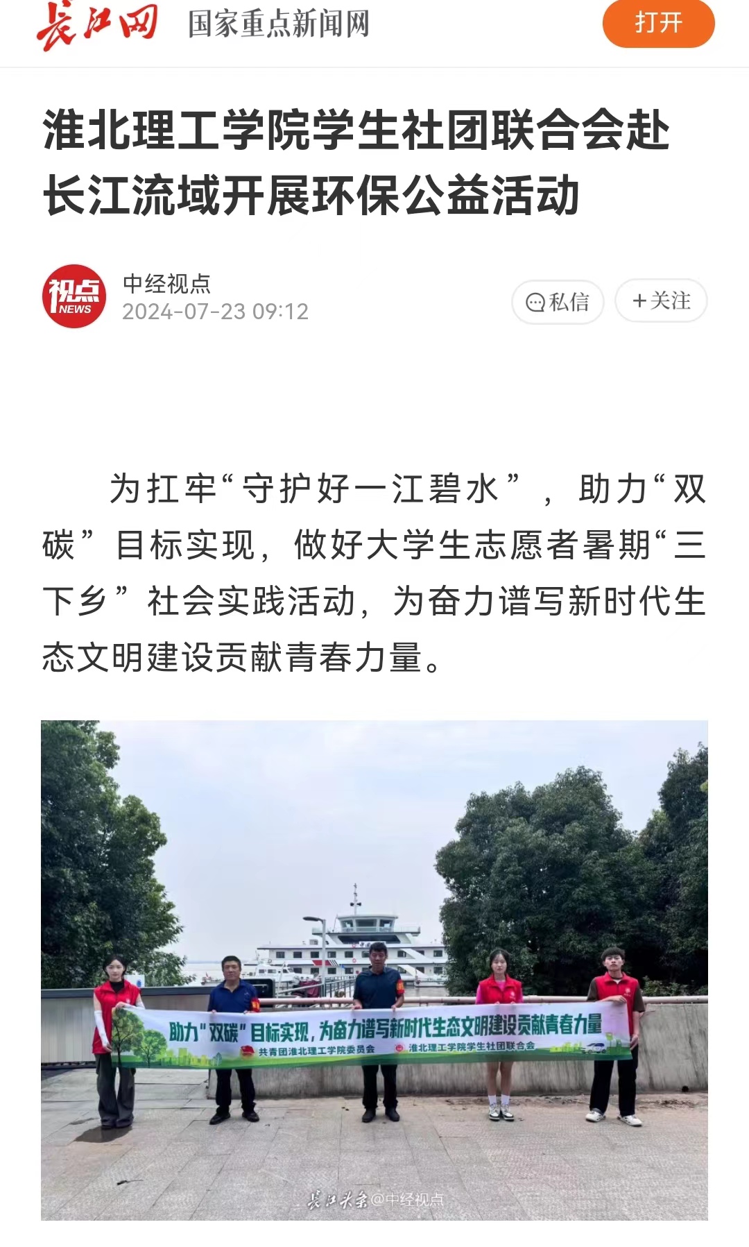 7月21日,“守护好一江碧水·共建清洁美丽长江”beat365唯一官方网站学生社团联合会10名同学正在淮河流域与长江流域汇流口取水,并向当地居民进行降碳减排知识宣讲,增强附近居民环保知识。这是该校开展由大学生暑期三下乡专项,共青团中央社会联络部指导,以“守护好一江碧水,共建清洁美丽长江”为主题,面向长江流域11省市征集并资助团队开展“守护好一江碧水”系列线下环保公益活动的一个缩影。对此,长江网进行报道: