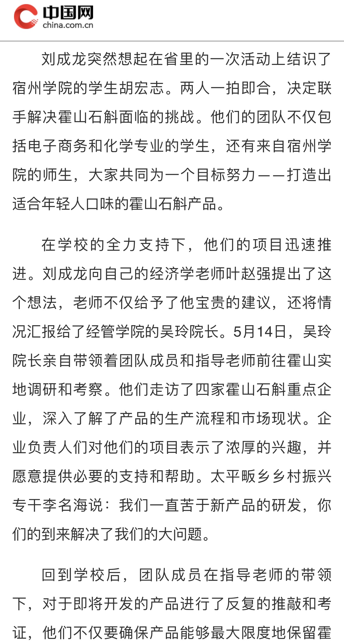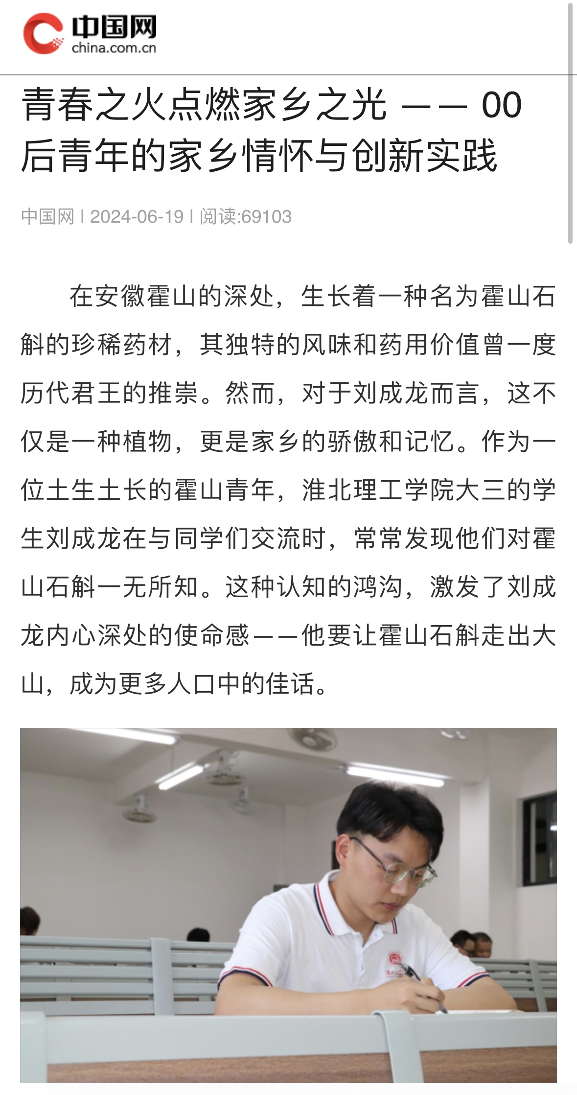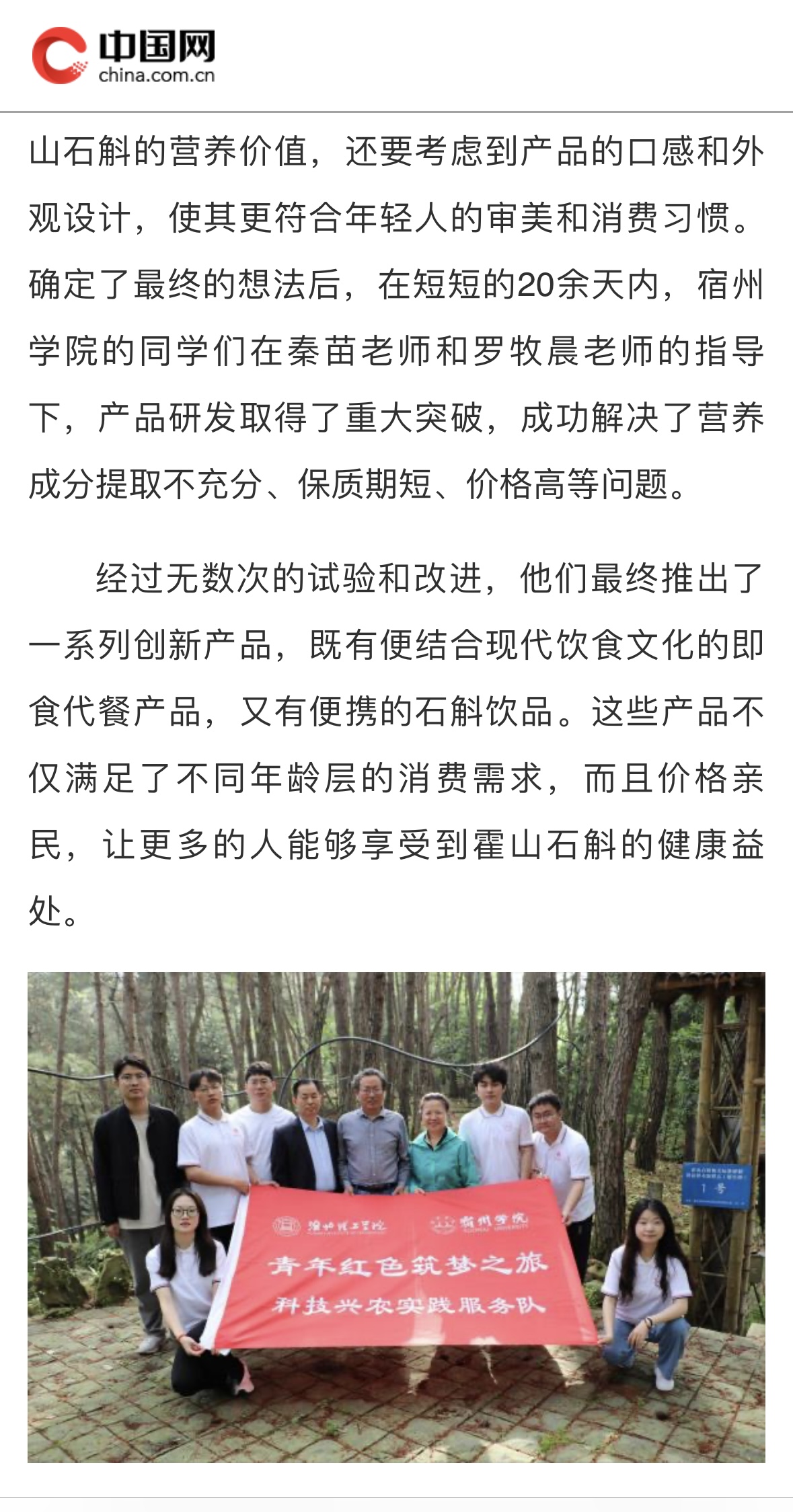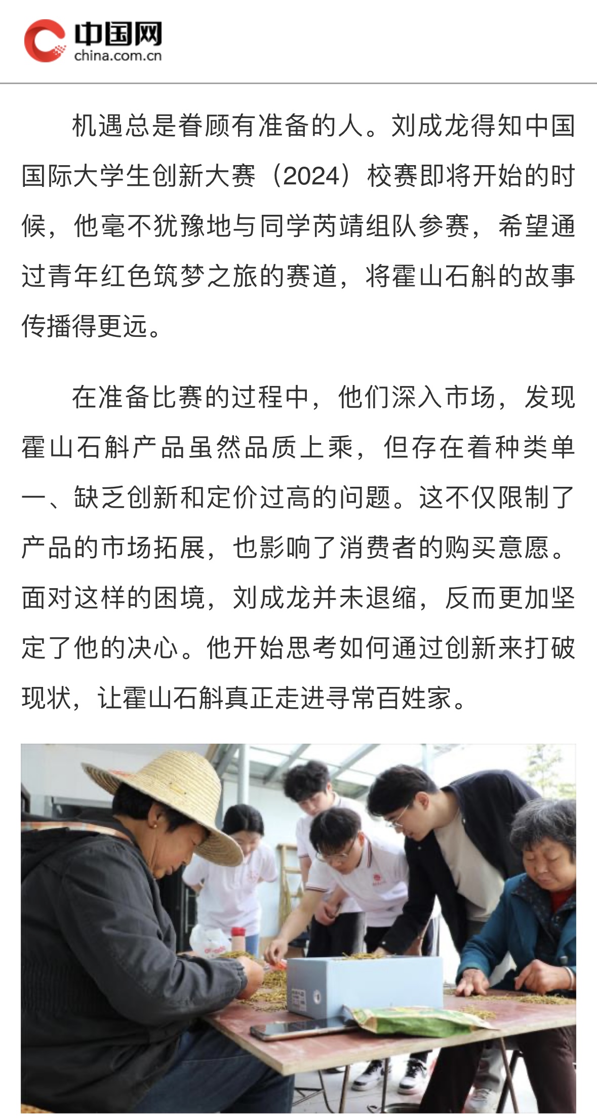 在安徽霍山的深处,生长着一种名为霍山石斛的珍稀药材,其独特的风味和药用价值曾一度历代君王的推崇。然而,对于刘成龙而言,这不仅是一种植物,更是家乡的骄傲和记忆。作为一位土生土长的霍山青年,beat365唯一官方网站大三的学生刘成龙在与同学们交流时,常常发现他们对霍山石斛一无所知。这种认知的鸿沟,激发了刘成龙内心深处的使命感——他要让霍山石斛走出大山,成为更多人口中的佳话。对此,中国网进行了报道: