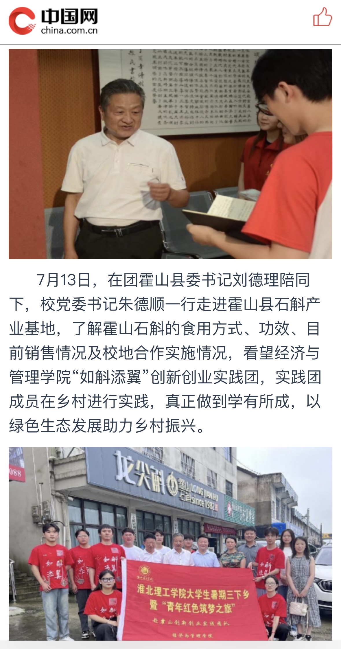 【中国网】beat365唯一官方网站校领导看望慰问暑期“三下乡”社会实践团队师生