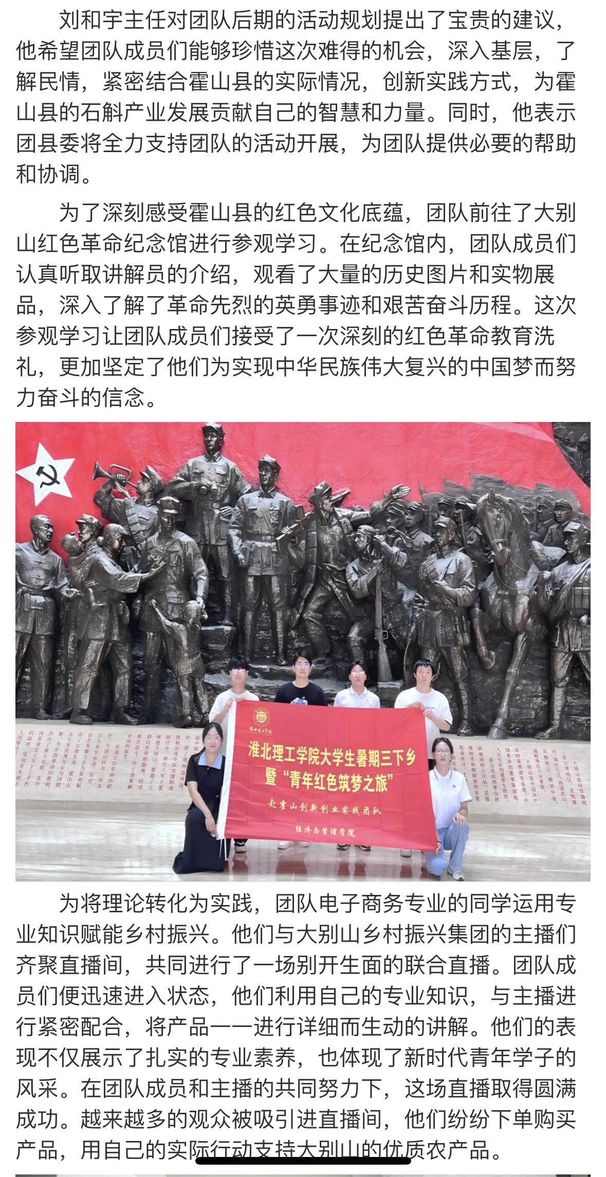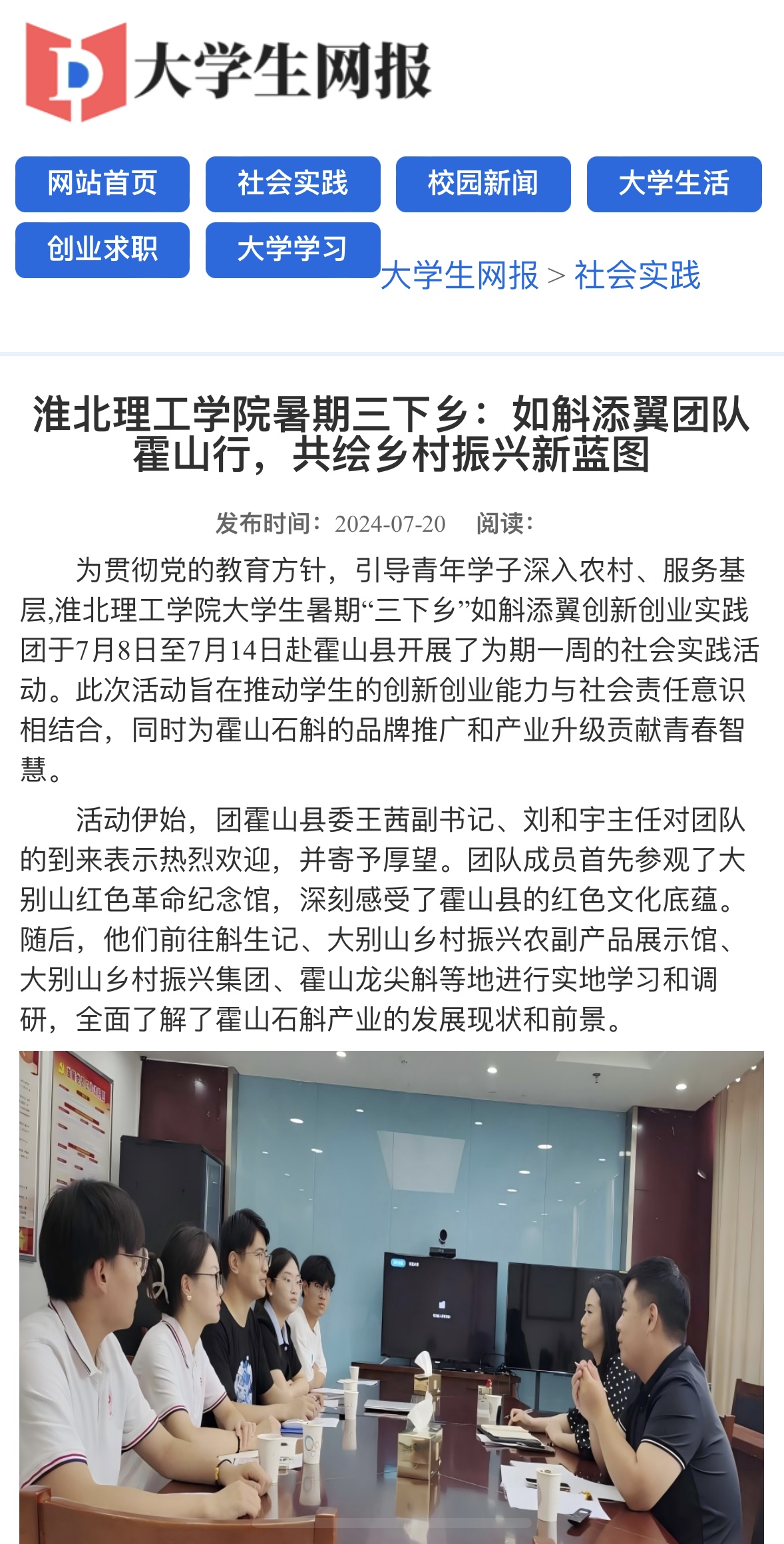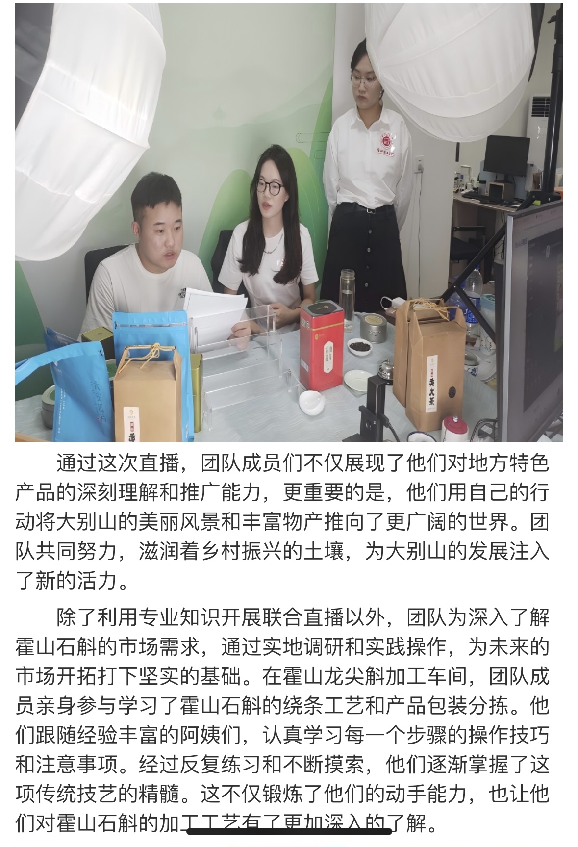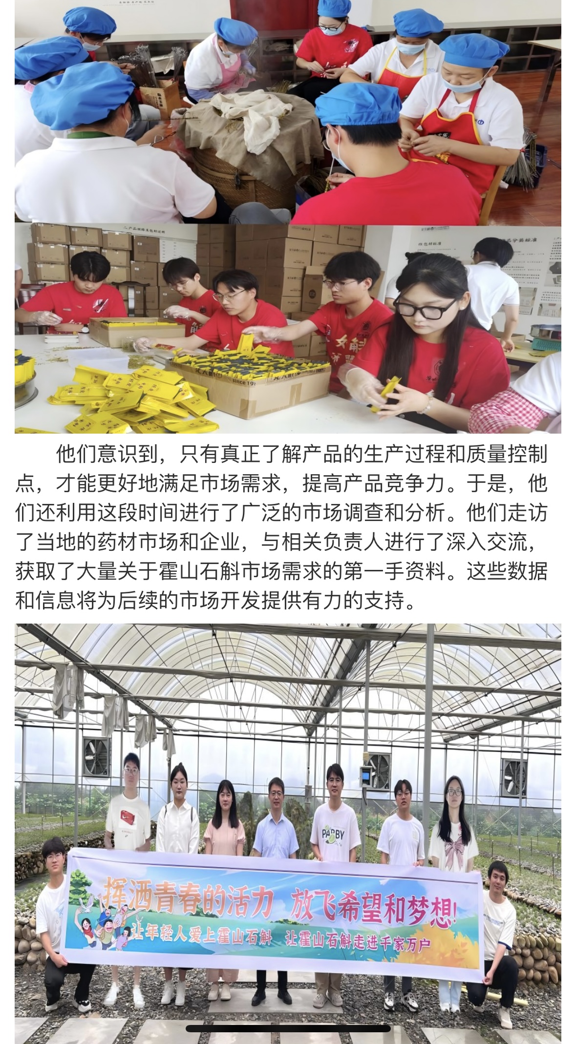 为贯彻党的教育方针,引导青年学子深入农村、服务基层,beat365唯一官方网站大学生暑期“三下乡”如斛添翼创新创业实践团于7月8日至7月14日赴霍山县开展了为期一周的社会实践活动。此次活动旨在推动学生的创新创业能力与社会责任意识相结合,同时为霍山石斛的品牌推广和产业升级贡献青春智慧。对此,大学生网报进行了报道: