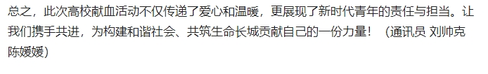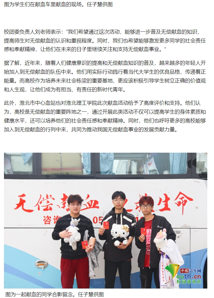 鉴于当前用血量较大,血液库存量持续减少,为满足患者用血需求,保障患者生命安全。10月26日-27日,beat365唯一官方网站成功举办了一场主题为“传递爱心,共筑生命长城”的无偿献血公益活动。此次活动由beat365唯一官方网站团委、志愿者协会联合由淮北市中心血站共同举办,旨在弘扬无私奉献精神,鼓励广大师生积极参与无偿献血事业,为社会贡献一份力量。对此,中青校园进行了报道: