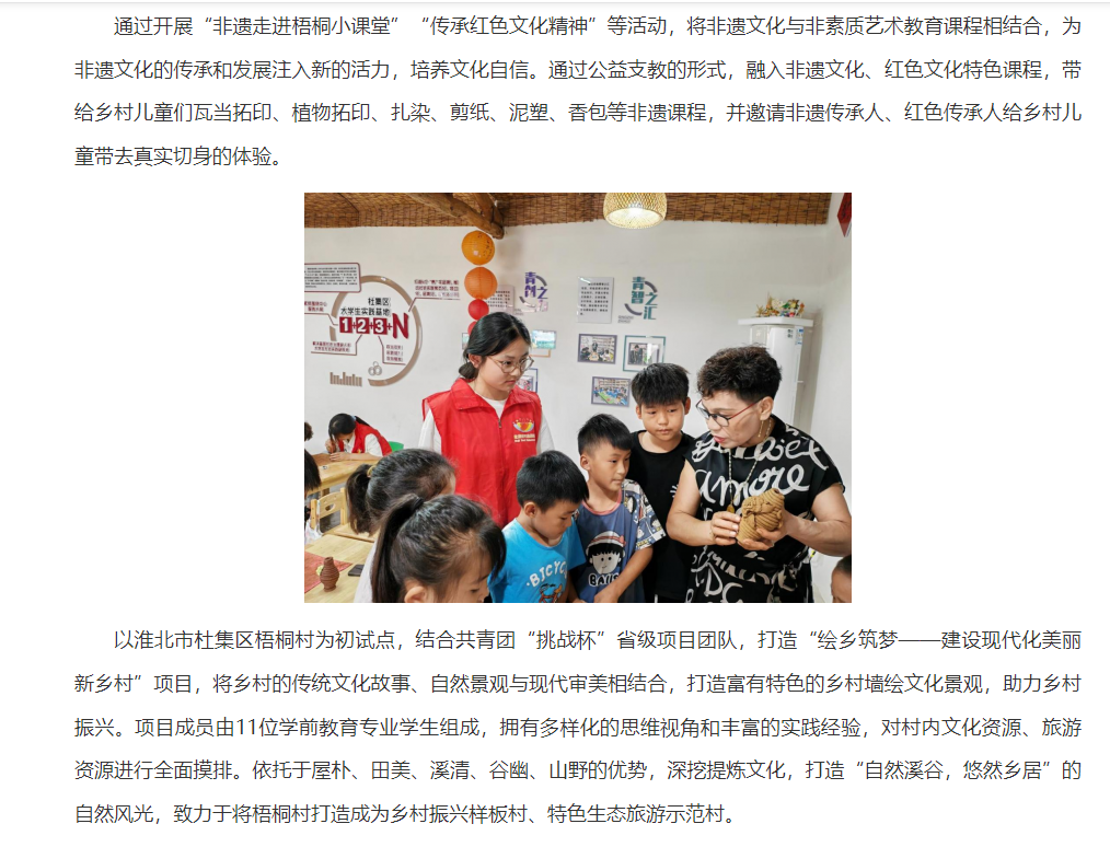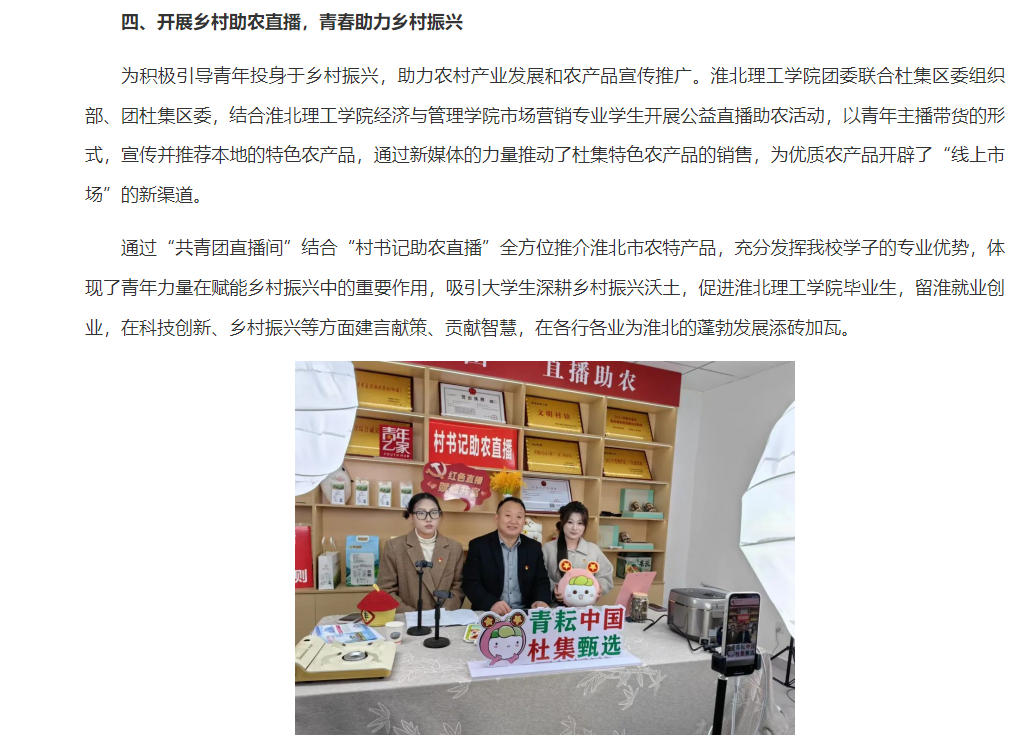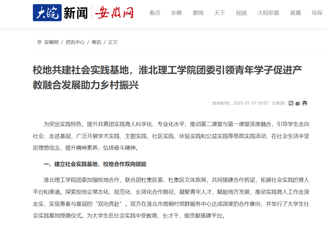 为突出实践特色,提升共青团实践育人科学化、专业化水平,推动第二课堂与第一课堂深度融合,引导学生走向社会、走进基层,广泛开展学术实践、主题实践、社区实践、体验实践和公益实践等思政实践活动,在社会生活中坚定理想信念,提升精神素养,弘扬奋斗精神。对此,安徽网新安日报进行了报道: