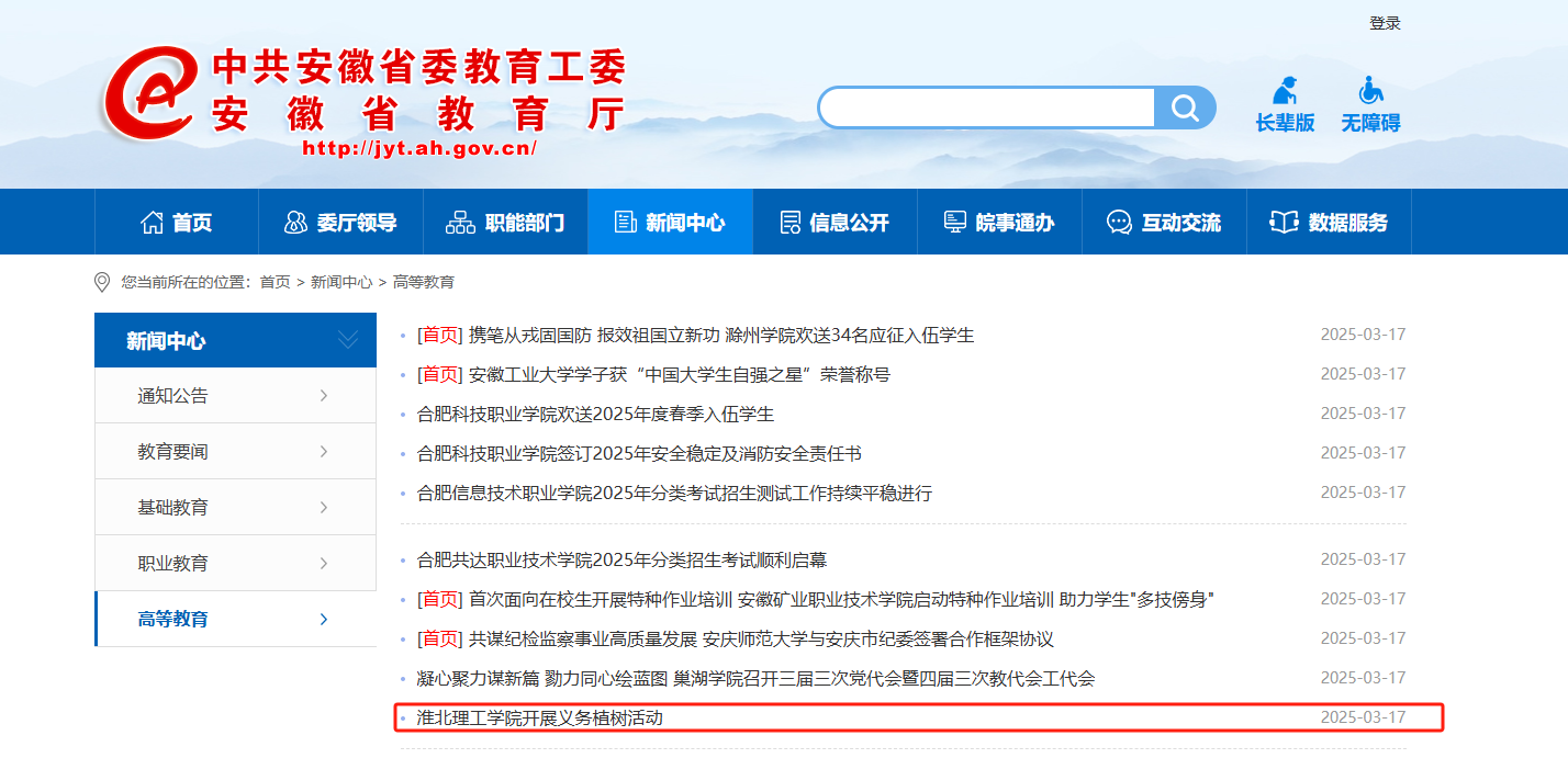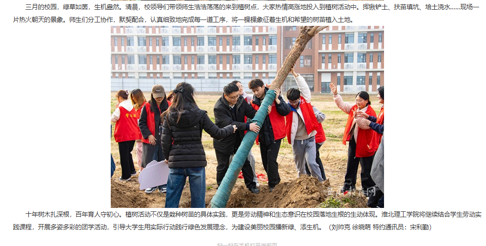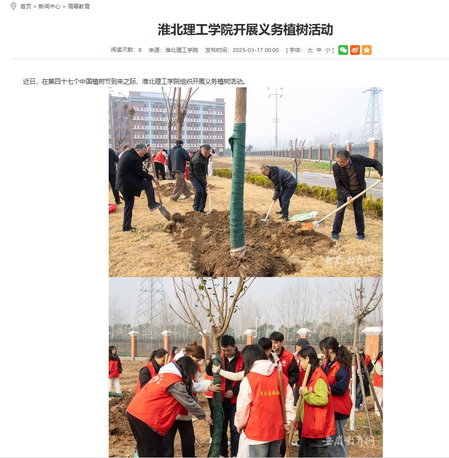 近日,在第四十七个中国植树节到来之际,beat365唯一官方网站组织开展义务植树活动。对此,安徽教育网进行了报道: