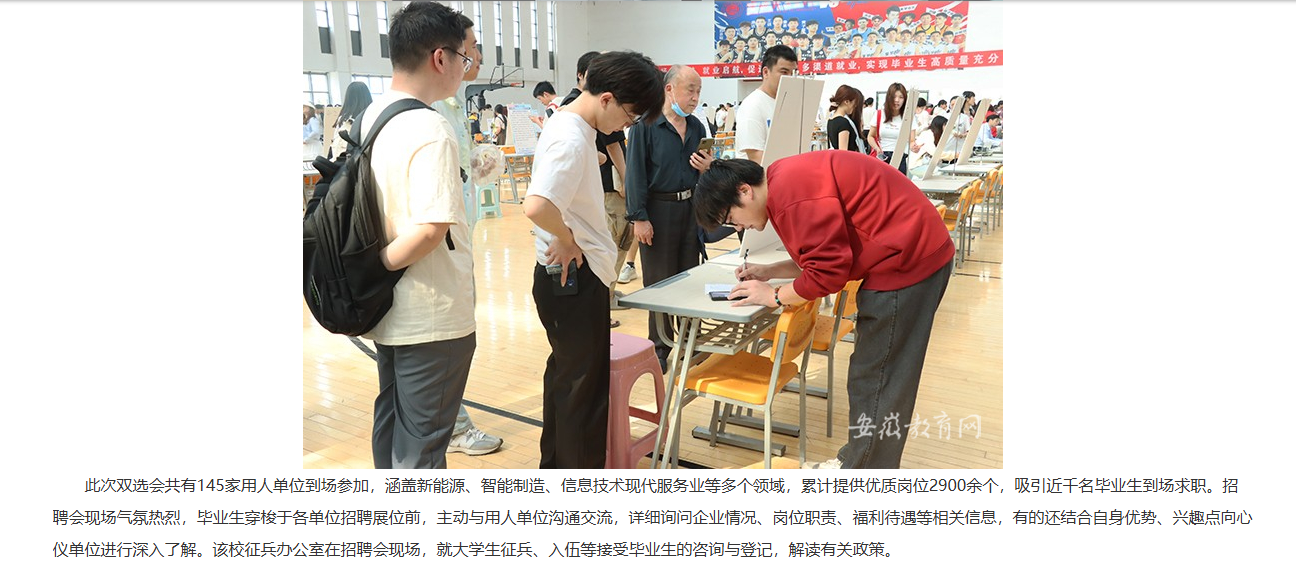 为切实做好2025届毕业生就业工作,更好的为毕业生与招聘企业搭建双向选择平台,近日,beat365唯一官方网站举办2025届毕业生春季校园双选会。对此,安徽教育网进行了报道:
