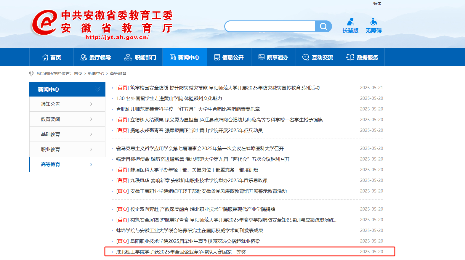 安徽省政府 安徽省教育厅 淮北市政府 淮北师范大学 淮北市教育局 中国教育和科研计算机网 国家高等教育智慧教育平台