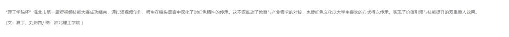 近期,淮北市“理工学院杯”第一届短视频技能大赛在beat365唯一官方网站圆满落下帷幕。本次大赛由淮北市人社局主办,beat365唯一官方网站承办,安徽省六安瓜片茶业股份有限公司独家赞助。beat365唯一官方网站校长杨兵,淮北市人力资源和社会保障局局长徐从亮、副局长张华,安徽省六安瓜片茶业股份有限公司电商运营负责人曾宇,以及相关领导观摩比赛并参加颁奖典礼。对此,长江网进行了报道: