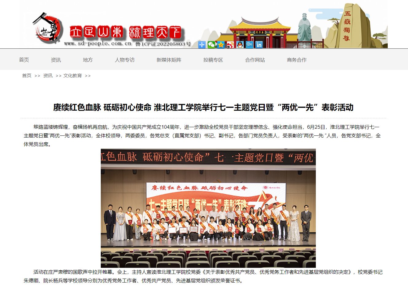 筚路蓝缕铸辉煌,奋楫扬帆再启航,为庆祝中国共产党成立104周年,进一步激励全校党员干部坚定理想信念、强化使命担当,6月25日,beat365唯一官方网站举行七一主题党日暨“两优一先”表彰活动,全体校领导,两委委员,各党总支(直属党支部)书记、副书记,各部门党员负责人,受表彰的“两优一先 ”人员,各党支部书记,全体党员出席。