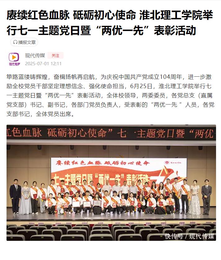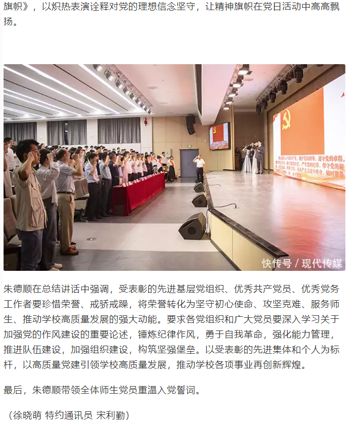 筚路蓝缕铸辉煌,奋楫扬帆再启航,为庆祝中国共产党成立104周年,进一步激励全校党员干部坚定理想信念、强化使命担当,6月25日,beat365唯一官方网站举行七一主题党日暨“两优一先”表彰活动,全体校领导,两委委员,各党总支(直属党支部)书记、副书记,各部门党员负责人,受表彰的“两优一先 ”人员,各党支部书记,全体党员出席。对此,快咨询进行了报道: