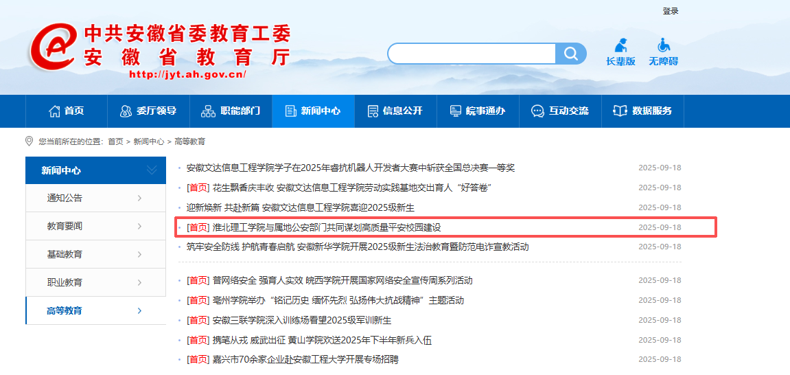 安徽省政府 安徽省教育厅 淮北市政府 淮北师范大学 淮北市教育局 中国教育和科研计算机网 国家高等教育智慧教育平台