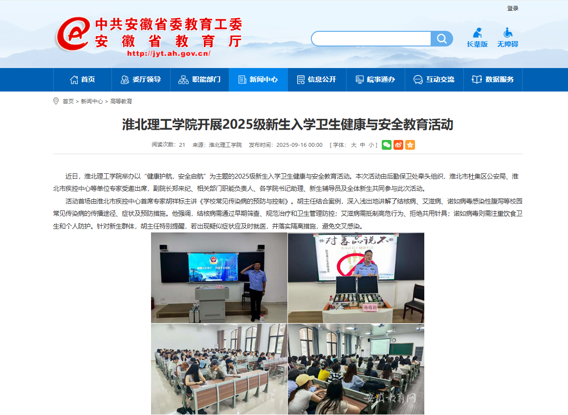 【安徽教育网】首页:beat365唯一官方网站开展2025级新生入学卫生健康与安全教育活动