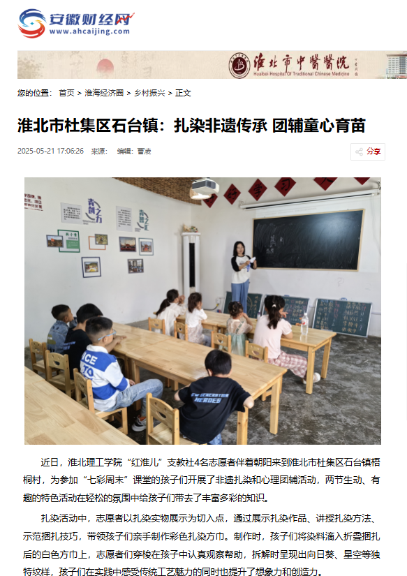 【安徽财经网】淮北市杜集区石台镇:扎染非遗传承 团辅童心育苗