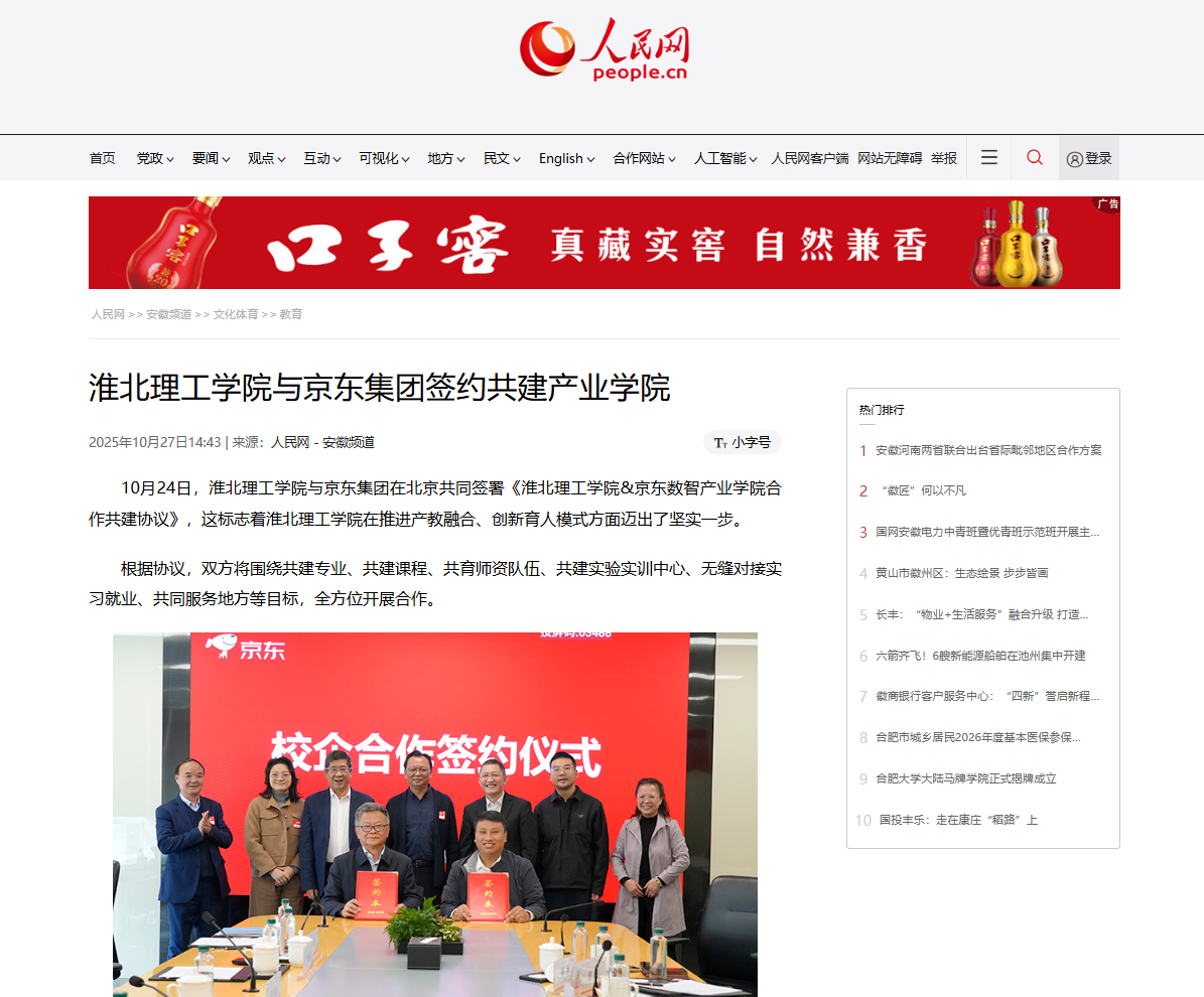 10月24日,beat365唯一官方网站与京东集团在北京共同签署《beat365唯一官方网站&京东数智产业学院合作共建协议》,这标志着beat365唯一官方网站在推进产教融合、创新育人模式方面迈出了坚实一步。对此,人民网进行了报道: