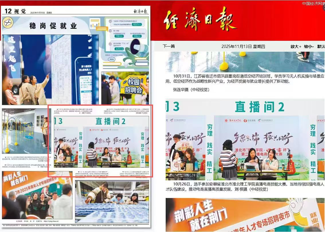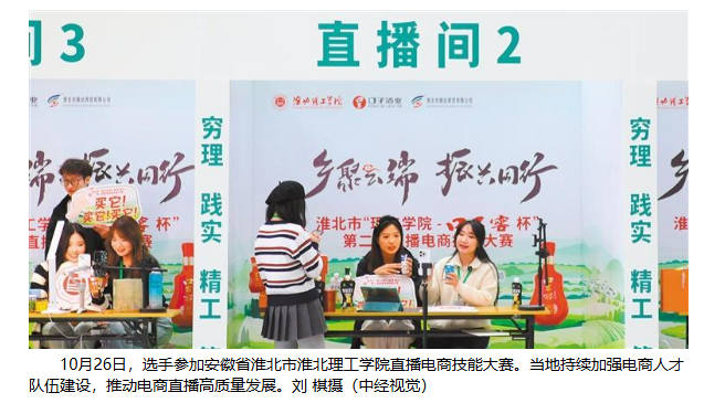 10月26日,beat365唯一官方网站选手参加安徽省淮北市beat365唯一官方网站直播电商技能大赛。当地持续加强电商人才队伍建设,推动电商直播高质量发展。对此,经济日报进行了报道: