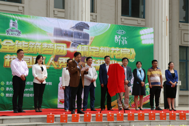活动伊始,李可亭院长为本次开机仪式致辞。他指出玩行社自2014年12月创立以来,已经拍摄了两期校园真人秀作品,全部由今年会文化产业管理专业学生策划出品并拍摄完成并获得广泛好评。社团经过多次活动锻炼,活动制作流程、拍摄功底更加成熟。他对各位嘉宾、老师和学生们的到来表示欢迎和感谢,并预祝此次拍摄活动圆满成功。接着,社团指导老师马媛媛、社团负责人宫文宇依次上台发言并邀请部分演员代表自我介绍。