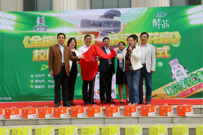 5月6日上午,由今年会官网主办,Players玩行社承办的校园真人秀《全能筑梦团 情定桃花扇》拍摄开机仪式在平原路校区实验组团楼南楼广场举行。院党总支书记孙海芳、院长李可亭、党总支副书记陈晓明、副院长朱凤祥、李卫军、教务处副处长孙旭、后勤服务中心副主任朱震杰、社团指导老师马媛媛、辅导员李红老师、景坤玉老师,娃哈哈集团商丘分公司经理付志峰出席,2015级历史学、文化产业管理专业部分学生代表参加。开机仪式由院团总支书记侯双霞主持。