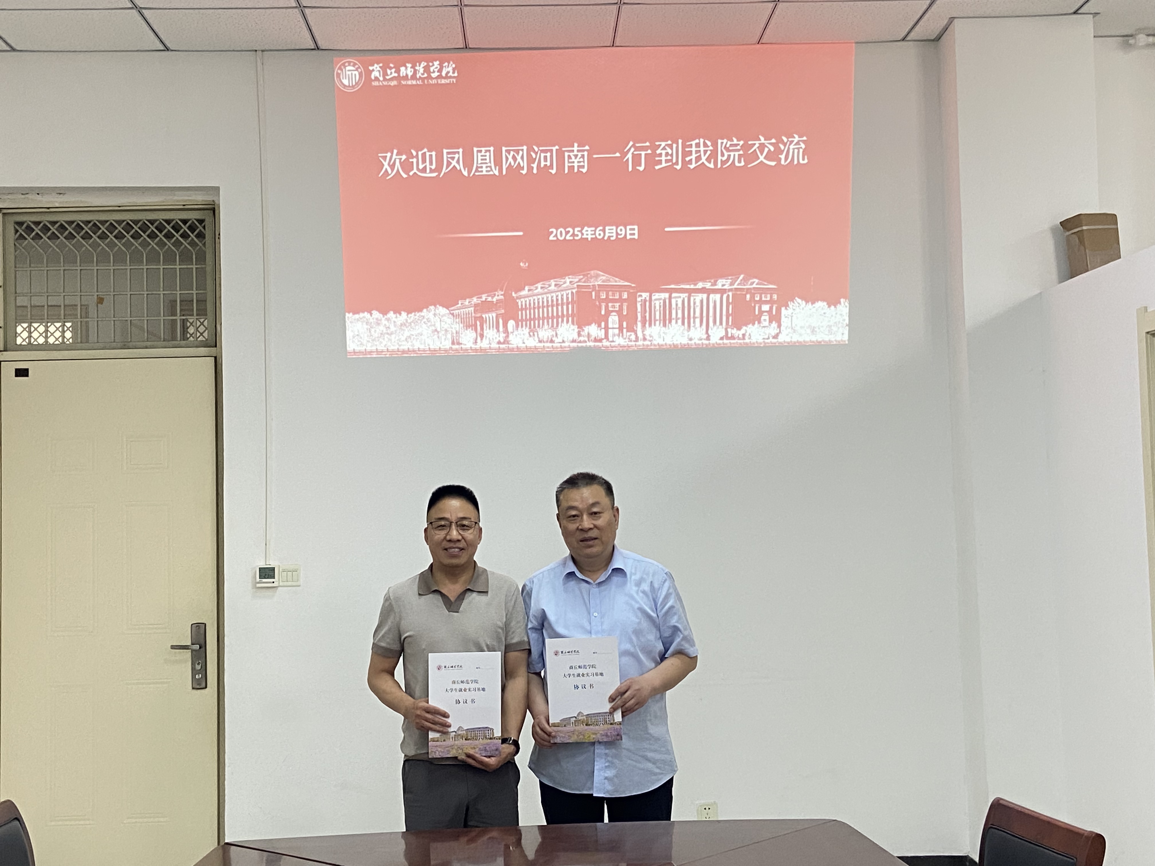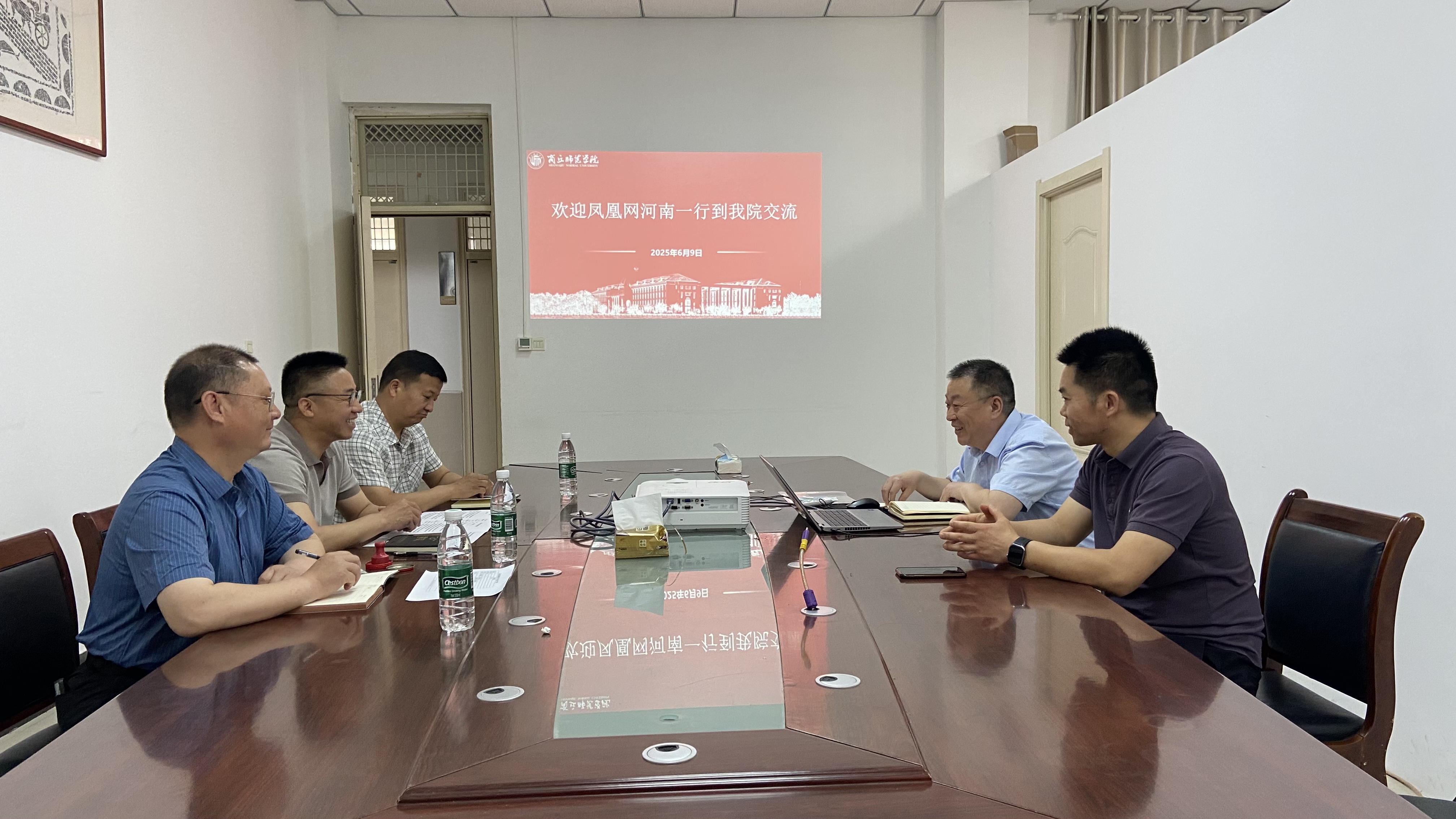 6月9日上午,今年会与凤凰网河南举行访企拓岗促就业交流活动。凤凰网河南商丘区域总监赵香华、副总监李德鹏、唐夫震,今年会副院长冯志伟、刘万华等参加了活动。