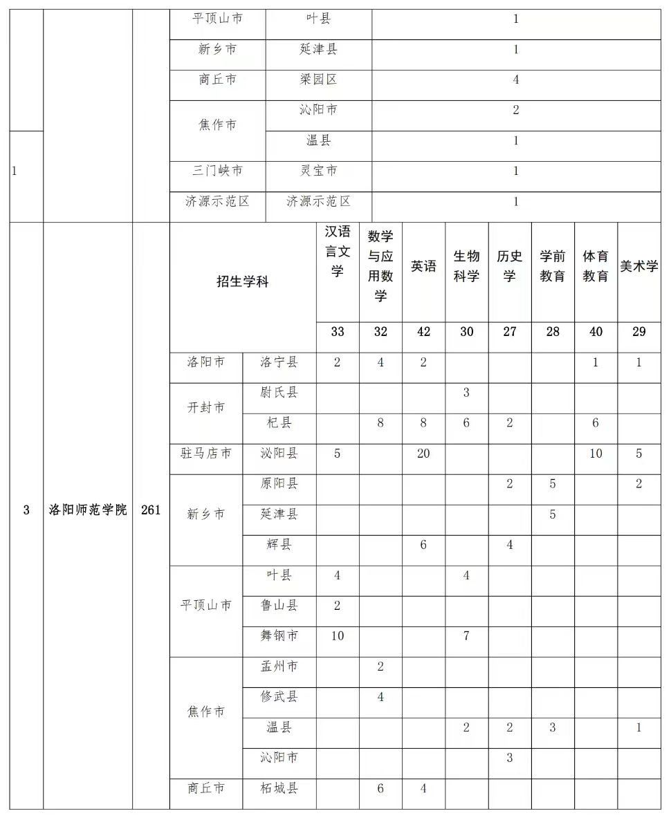 3.河南省 2025年“小学教育”地方公费师范生本科层次定向招生分布表