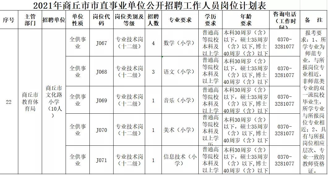 8.各岗位政策咨询电话:详见《2021年商丘市市直事业单位公开招聘岗位计划表》所附电话。